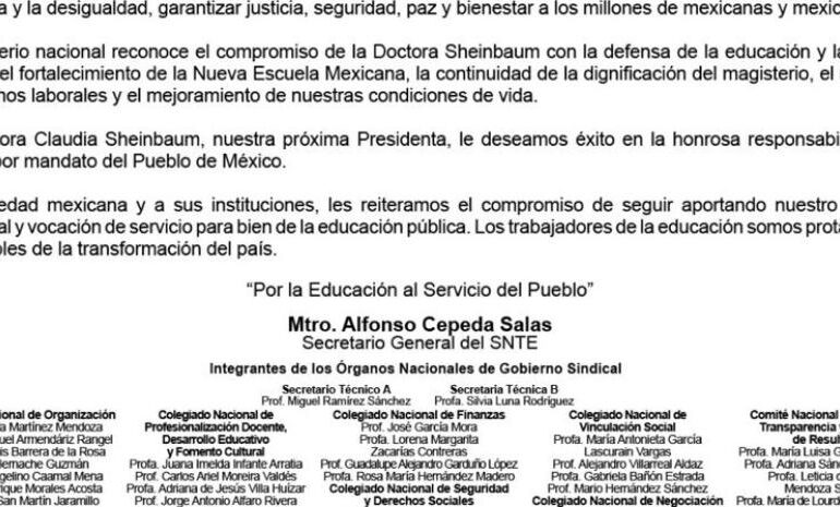 “Saludamos desde Argentina, nuestro país, al pueblo mexicano por la histórica jornada democrática que protagonizó. Y felicitamos al Movimiento de Regeneración Nacional (MORENA) por el triunfo obtenido en las urnas y a quien fuera su candidata, hoy la primera Presidenta de México, Dra. Claudia Sheinbaum”, expresó también Cristina Kirchner en las primeras horas de la madrugada de este lunes para saludar a Sheimbaum, en su cuenta de X (ex Twitter).